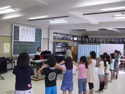 1学期の終業式で、全校児童に披露した「白い雲」の二部合唱をご指導いただきました。