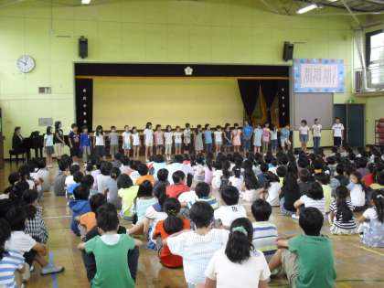 1学期、ほんとにみんなよくがんばりました。通知表をよく見て振り返ってほしいと思います。「できるがいっぱい」をふやしましたね。あいさつがよくできました。「笑顔がいっぱい」でした。そして「元気がいっぱい」で登校できました。全員に拍手を送りたいと思います。2学期もこの調子で、できることはさらに高い目標をもってがんばってほしいと思います。
