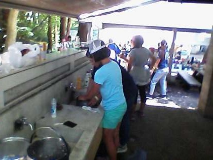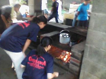 かまど係、野菜切り係などに分かれて作業してます。 -