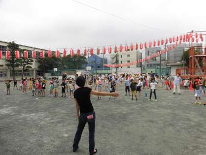 本日は、奥沢小学校の校庭で盆踊り大会が開催されました。やぐらの周りでは、奥沢小の子供たちが太鼓や踊りを披露しました。