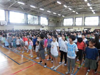 今朝も暑い日差しのもと、奥沢小学校の校庭でラジオ体操が行われました。
