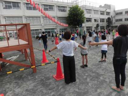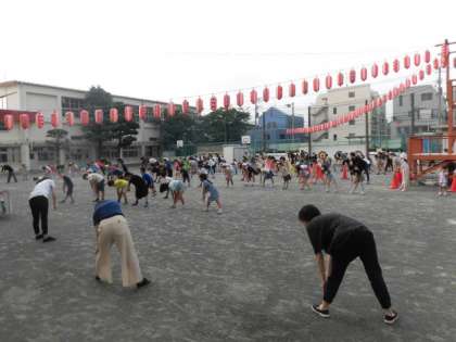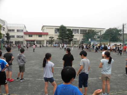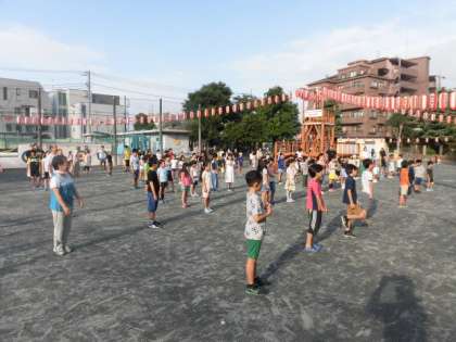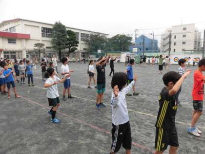 奥沢小学校の校庭で、ラジオ体操が開催されました。