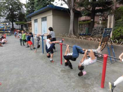 7月9日(火)低学年の児童は、朝運動を行いました。固定遊具や長縄跳び、フラフープといろいろな運動に親しみました。