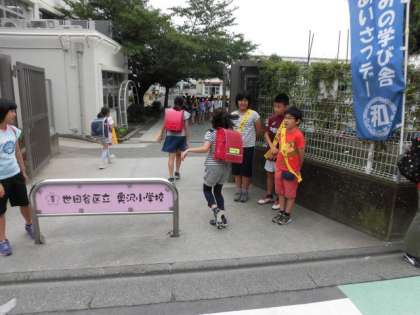 毎月15日は、和みの学び舎(奥沢中学校、奥沢小学校、東玉川小学校)のあいさつDayです。