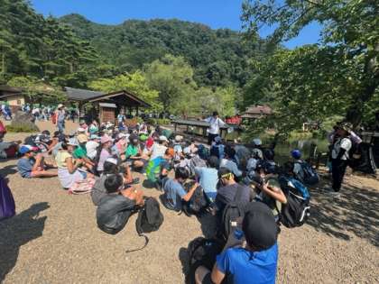 ガイドさんによる詳しい説明を、みんな真剣に聞いていました。 -