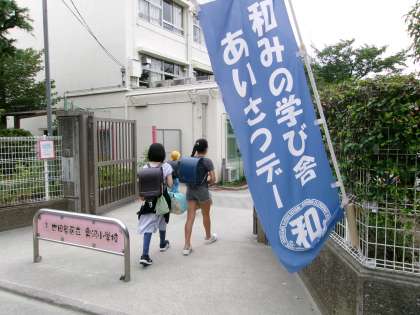 今年度も毎月15日前後に、奥沢中学校から生徒の皆さんが来てくれて、挨拶運動をしてくれています。この地域のお兄さん・お姉さんたちに会えて、子どもたちも嬉しそうです。