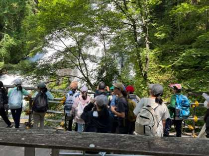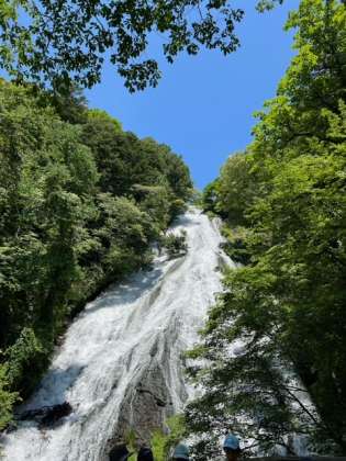 赤沼から出発して、湯滝に到着しました。湯滝の迫力を感じました。