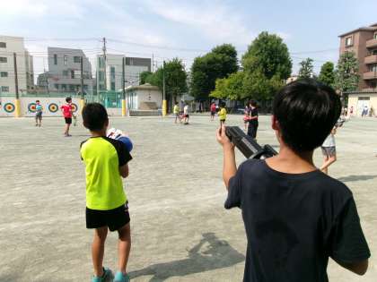 今日は、5年生が水鉄砲を使って水遊びをしました。水浸しになりながらもとても楽しそうでした。