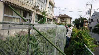 昨日の台風で、学校の田んぼも影響を受けました。先日、作っていただいた囲いも風の力で曲がり、稲も横になっていました。今日は、朝から、ご指導をいただいている地域の方が、稲の様子を見に来てくださいました。早速、囲いの修理をしてくださいました。教員も、地域の方に教えていただきながら、作業をしました。地域の方に感謝しつつ、収穫の日まで、大切に育てて行きます。