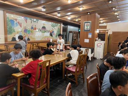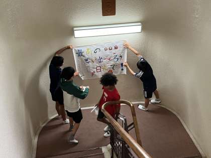雨が降ってきたので、キャンプファイヤーの代わりにクラスレクを行いました。
