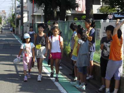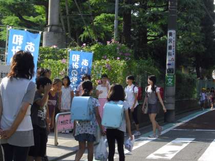 この取り組みは、学び舎の青いのぼり・たすきとともに、だいぶ知れ渡ってきたと思います。朝だけでなく、昼も帰りも、学校や奥沢の地域にたくさんのあいさつが広がるようにしたいと思います。