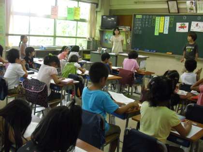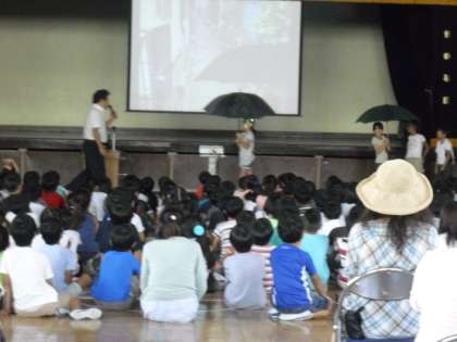 他校の先生や保護者の方も大勢いらして、子どもたちが英語に関心をもって取り組んでいる様子を見ていただきました。