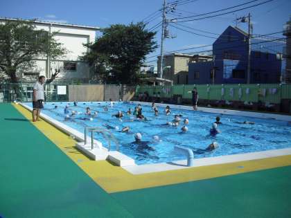 子どもたちはみんなの前で泳ぐということの緊張感を味わいながら、よくがんばりました。自己のベスト記録をのばし、50M自由型女子、50M平泳ぎ女子、25M自由型女子、25M背泳ぎ男子では、奥沢小学校歴代記録を更新しました。