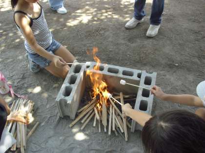 後半は、まきに火を付ける体験です。マッチを始めて使う児童が多くいましたが、どのグループも上手にまきに火を付けることができ、マシュマロを焼いて味わいました。みんなとても満足した様子でした。 -