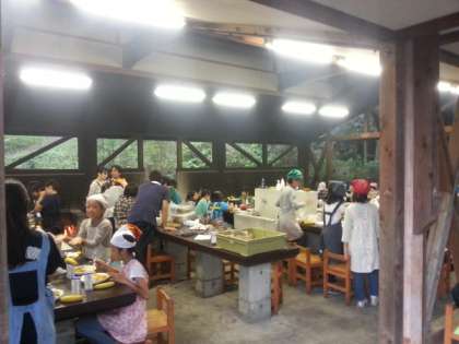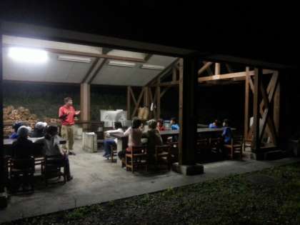 午後には飯ごう炊さんをして、カレーを作りました。夜は、専門ガイドさんから、里山の夜の様子を教えてただきました。