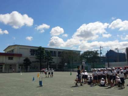 汗ばむ陽気の中、今週末の運動会に向けて1回目の全校練習が、9/28(月)朝の時間から1時間目にかけて行われました。
