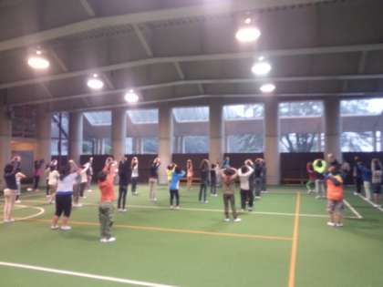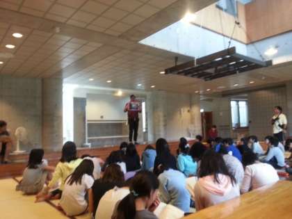 二日目の午後は、里山についての学習のまとめと、カルタ大会をしました。夜は屋内運動場でレクリエーションをしました。