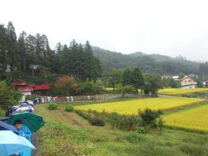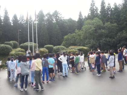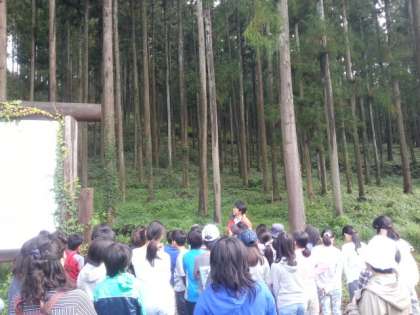 三日目。晴れ間が見られ、宿舎の庭で閉園式を行行いました。その後、里山めぐりに行きました。今日のテーマは林業です。この後、東京に向かいます。