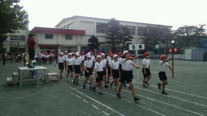 入場行進や応援合戦を中心とした練習内容を、児童は皆引き締まった面持ちで一生懸命に取り組む姿が印象的でした。 -