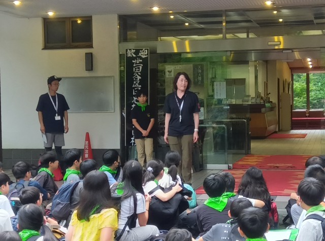 開園式では、林間学校のめあてを確認し、宇賀村副校長先生、宿舎の館長さんからお話をいただきました。