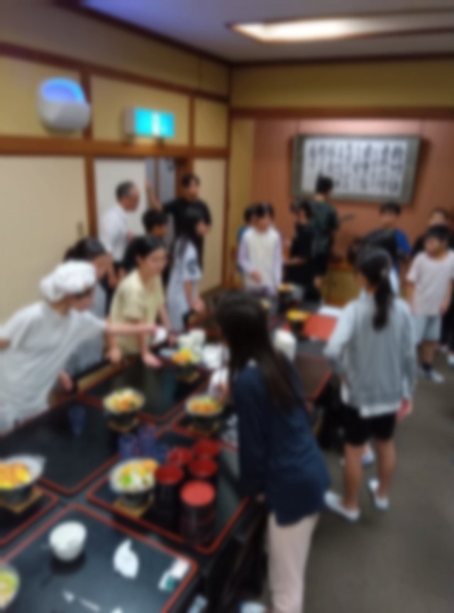 二日目の夕食です。日光の湯葉をこんにゃくに練り込んだ湯葉こんにゃくをいただきました。片付けもみんなで協力して手際よく行っています。