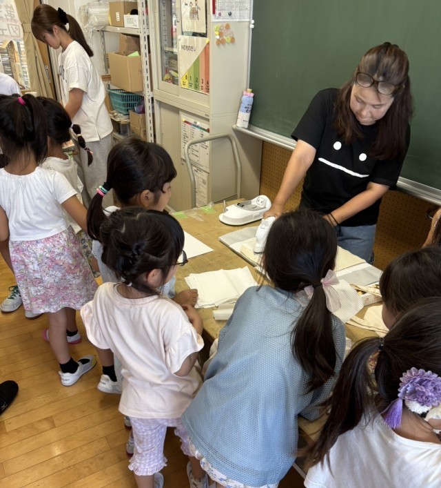 サマーワークショップ2日目の午前は、フレンドシップブレスレット作りが行われました。