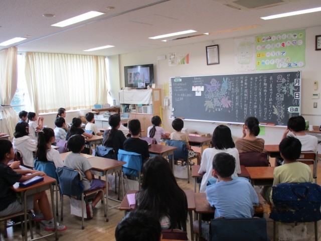 猛暑の夏休みを終えて子どもたちが学校に戻ってきました。始業式も暑さを考慮して教室でのテレビを使ってのオンラインで行いました。代表の5年生6名が新しくなった校長室で2学期の抱負等をしっかりと話してくれました。9月も熱中症や新型コロナウイルス感染症などの予防もしっかりとしながら安心・安全、そして楽しく学校生活を送りましょう。