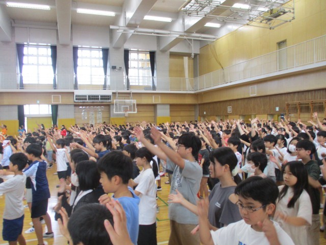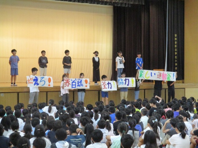 今日から25日(土)の運動会に向けての練習が始まります。全校朝会の後、今年の運動会のテーマの発表がありました。今年のテーマは「燃えろ!赤白魂!全力!協力!楽しい運動会!」です。開校65周年の記念の運動会。みんなで素晴らしい運動会にしていきましょう。