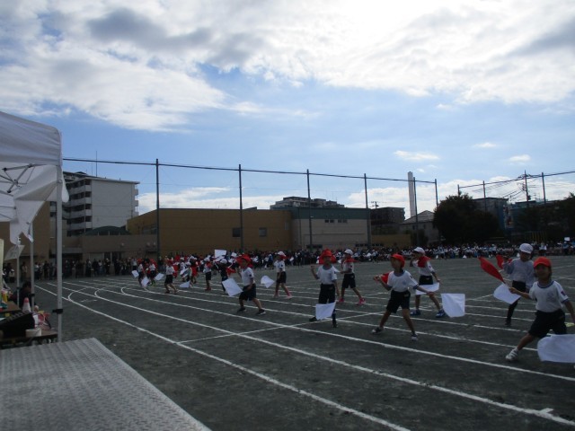 2年生の「光り輝け!PIKAPIKA」です。フラッグさばきが見事です。