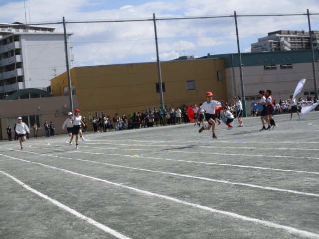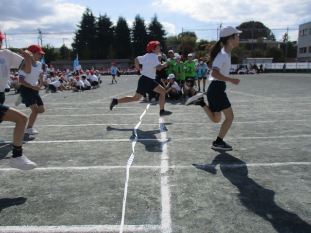 6年生の徒競走(100m)です。小学校最後の徒競走。力いっぱい走っています。