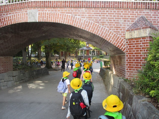 秋晴れの良い天気の中、1年生が遠足に出かけました。小学校になって初めての遠足。希望丘公園まで約束を守ってしっかりと歩きました。