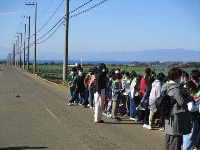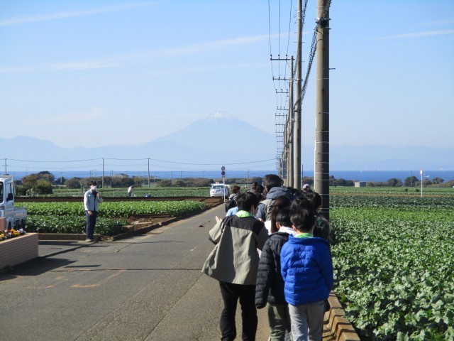 21日(金)の三浦市農業協同組合での見学の様子です。なぜ、三浦市が野菜作りが盛んなのか、有名な「三浦だいこん」は今では、あまり作られておらず、12月末に3日間しか出荷されないことなど貴重な話を聞かせていただきました。お話のあとは、広い畑を実際に見学しました。富士山が遠くにきれいに見えています。
