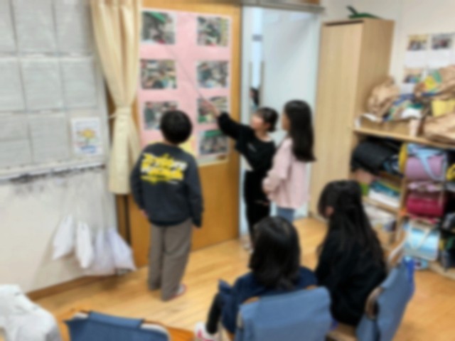 11月5日に町たんけんで行った施設やお店について、学年で発表会をしました。