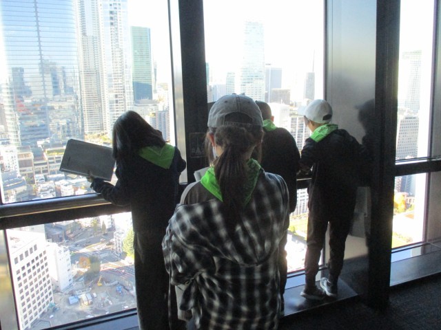 東京タワーを見学しています。昨日と違って外国から観光に来ている方がたくさんいました。「ハロー」と声を掛け合いながら見学していました。
