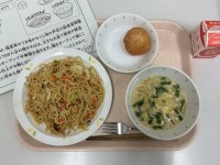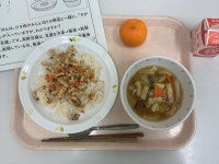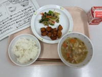 今日の給食は、ハッシュドポーク、ツナとコーンのサラダ、サンフジりんご、牛乳です。