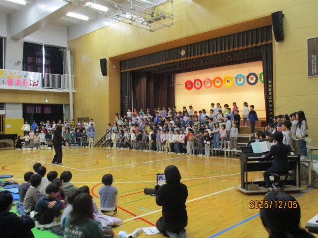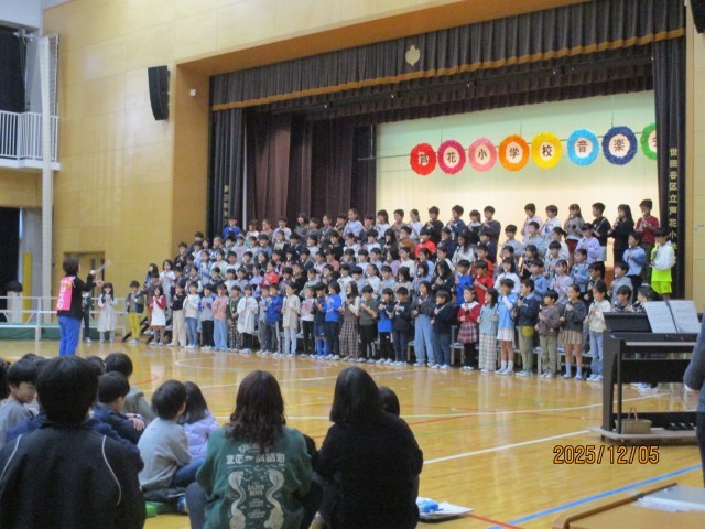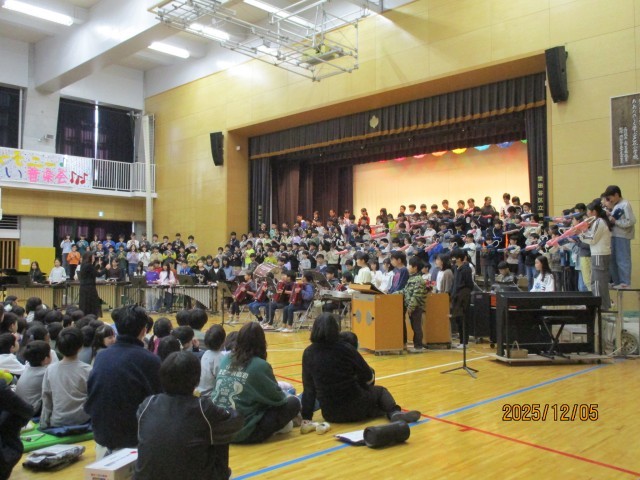1年生、3年生、5年生の発表の様子です。たくさんの友達の前でどの学年も力いっぱい演奏しています。