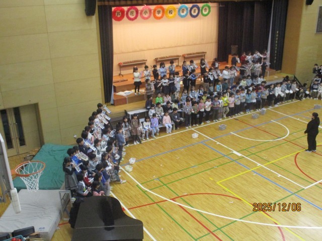 1年生。合唱「みいつけた!」(メドレー)、合奏「子犬のマーチ」です。