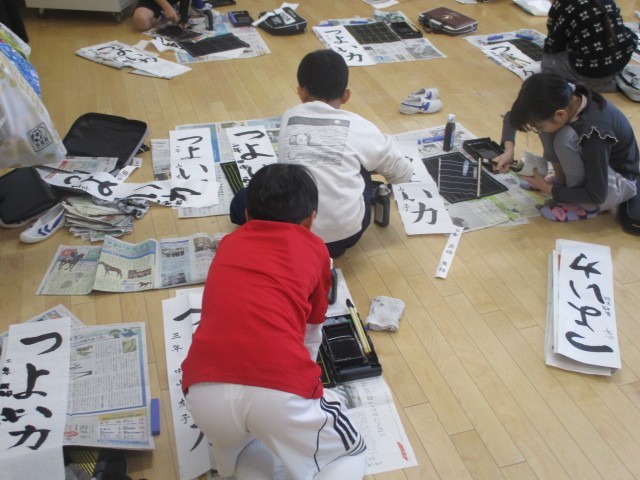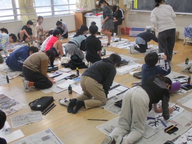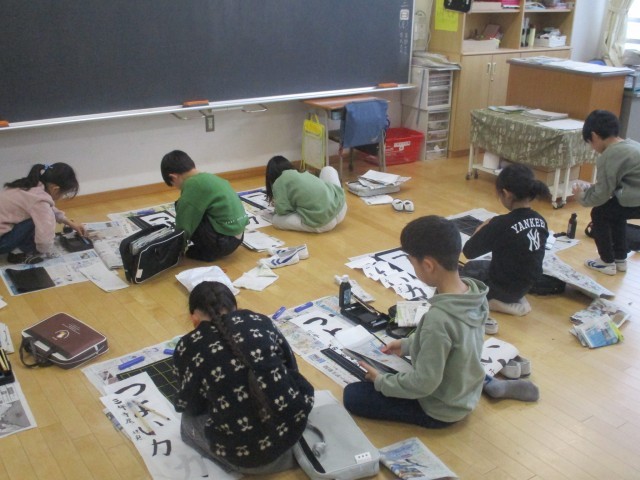 2学期、最後の週になりました。書初め練習に取り組む学級があります。一文字一文字、集中して書いています。