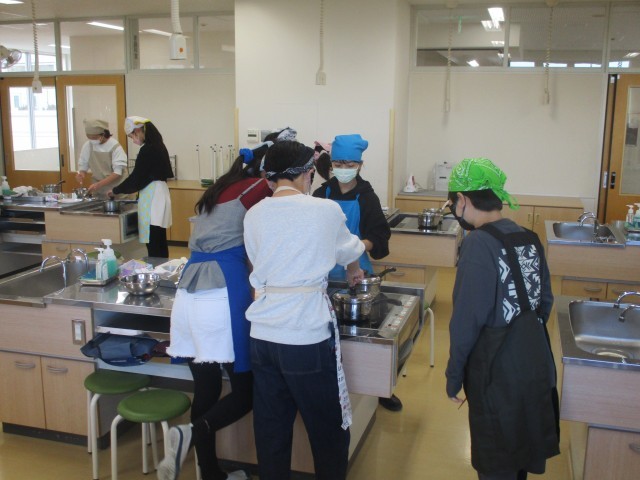 6年生が、調理実習を行っています。班の友達と協力してポテトサラダなどを作っています。さすが6年生、手際よく取り組んでいます。