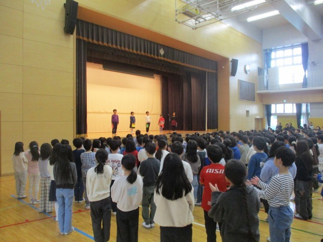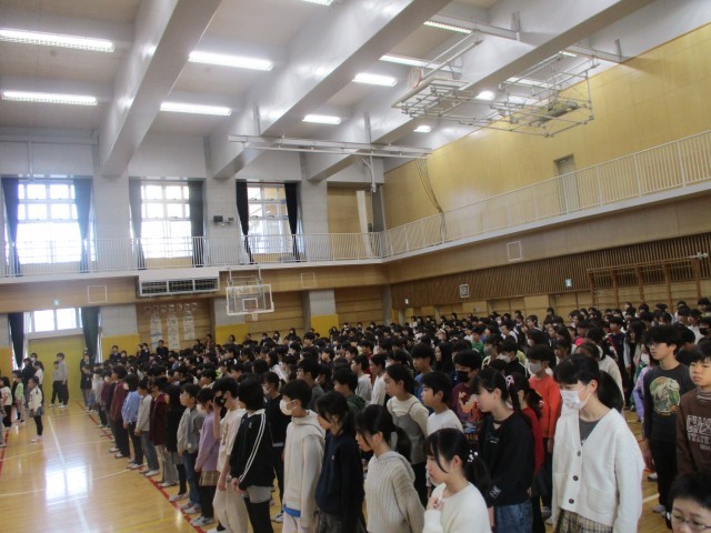 2学期もいよいよ今日で終わり、体育館で終業式を行いました。運動会や音楽会などの行事、それ以外の活動にもしっかりと取り組み充実した2学期になりました。代表の2年生が2学期頑張ったことや3学期のめあてなどしっかりと発表してくれました。終業式の後には、生活指導主任の西山先生から冬休みの過ごし方についてお話がありました。「車」「火」「人」「ルール」の4つのキーワードを忘れずに安全に楽しく冬休みを過ごしましょう。
