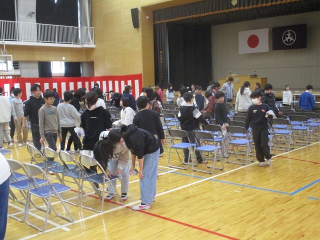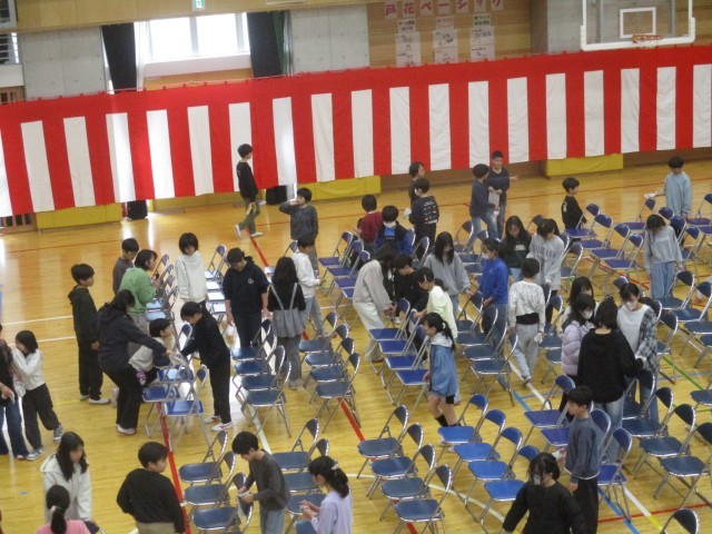 25日の卒業式に向けて、5年生が体育館の掃除や椅子並べなどの準備をしてくれました。6年生が気持ちよく練習できるようみんなで協力して手際よく準備をしてくれました。
