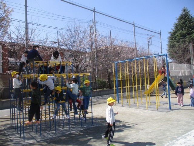 今のクラスでの最後の外遊び。良い天気の中、みんなで仲良く遊んでいました。