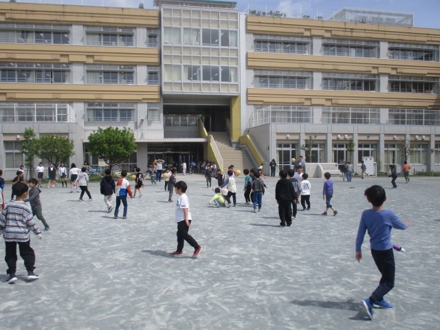 良い天気の中、中休みに子どもたちが元気に遊んでいます。今年度も広い校庭で力いっぱい遊びましょう。