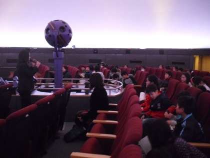 後半はプラネタリウムです。太陽や月の動き方、月は日によって形が変わって見えること、時刻によって位置が変わること、星の明るさや色が違うこと等を学びました。すばらしい星の世界を見ることができました。センターの職員のみなさん、ありがとうございました。