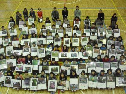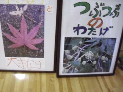 自然をテーマにした、個性豊かなすてきな作品が完成しました。一人一人の感性が伝わってきます。子どもたちの作品は、近く地域の施設で展示する計画が進行中です。決まりましたらお知らせします。最後は全員で記念撮影です。