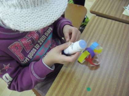 ひかり学級の作業の時間の様子です。お楽しみ会で飾る輪飾りを作っていました。子どもたちはお楽しみ会のために楽しんで作っていました。手先の訓練にもなっています。
