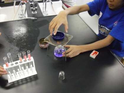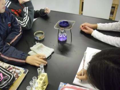 6年生の理科の授業の様子です。前回の実験で金属を溶かした水溶液を、今度は熱してどのような反応をするのか観察します。ある水溶液を熱すると白い粉のようなものが出てきました。水溶液には金属を変化させるものがあることを学びます。