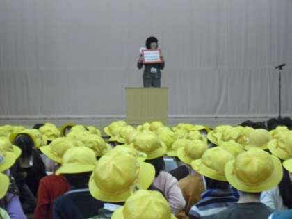 今朝の終業式の様子です。渡部校長が2学期にがんばったこととして、50周年記念関係の行事が成功したことをあげました。そのなかでも、5・6年生が小学校を代表して式典にも参加し、努力したことをあげました。みんなで5・6年生に拍手を送りました。