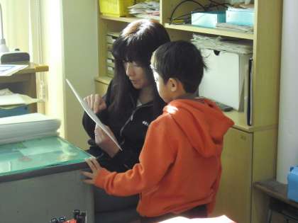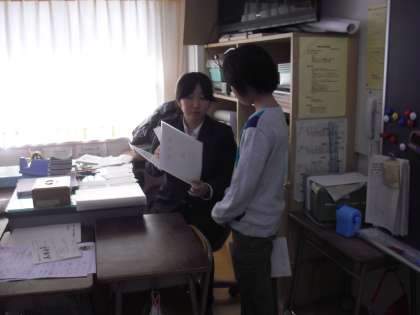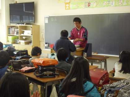 担任から通知表を受け取っている様子です。2学期に努力したことや成長したところを伝えながら子どもたち一人一人に手渡しているところです。様々な学習や行事等を通して、子どもたちのよさをたくさん見ることができた2学期でした。