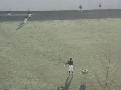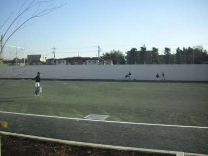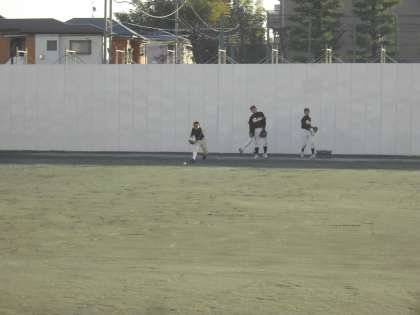 校庭の半分は、野球部が部活動を行っています。午前中は北沢中学で練習をしていました。午後は、学校での練習です。今日もノックを受けています。ボールに追いつくように走って体の正面で補るようしています。
